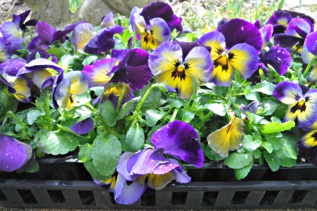 These pansies, regal in their purples, and brilliant with their sunlight faces, almost seem alive. I can just about imagine them singing ‘Hosanna,’ on this Palm Sunday. After all, if the trees can clap their hands, perhaps the pansies truly can sing!