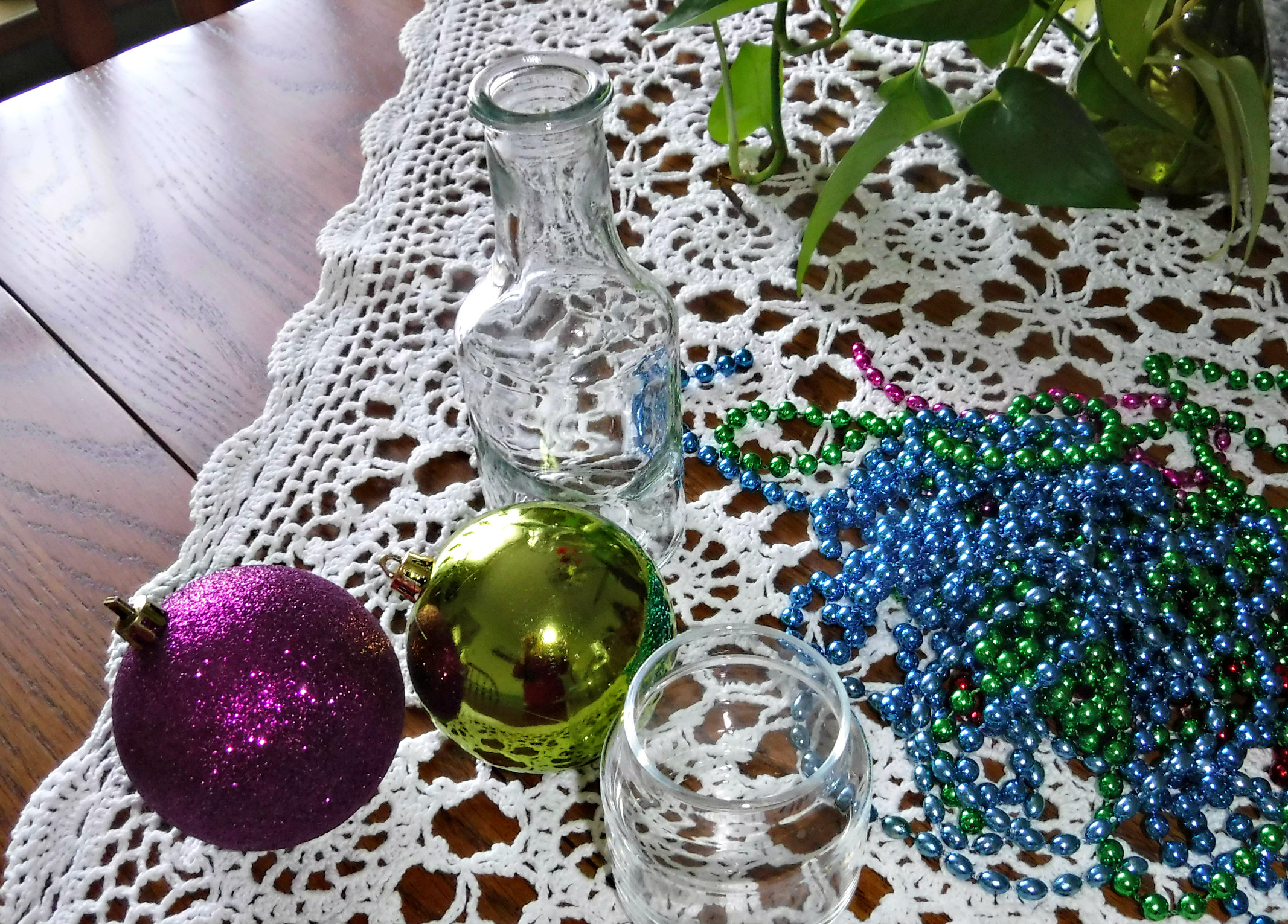 I had extra Christmas beads lying around after I finished decorating this year. Hmmm-what to do with them?