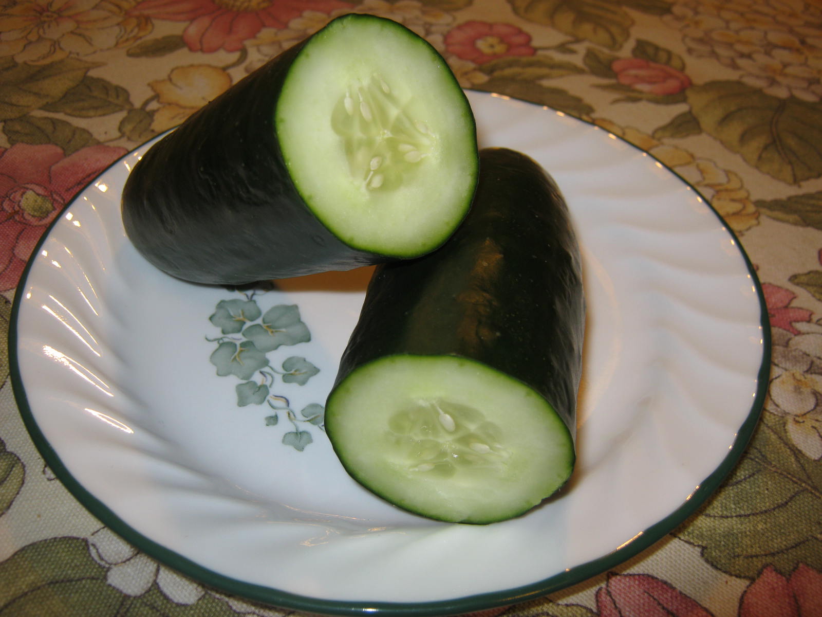 “Cucumber (Cucumis sativus) is a widely cultivated plant in the gourd family Cucurbitaceae. It is a creeping vine that bears cylindrical fruits that are used as culinary vegetables. There are three main varieties of cucumber: slicing, pickling, and burpless.” Wikipedia