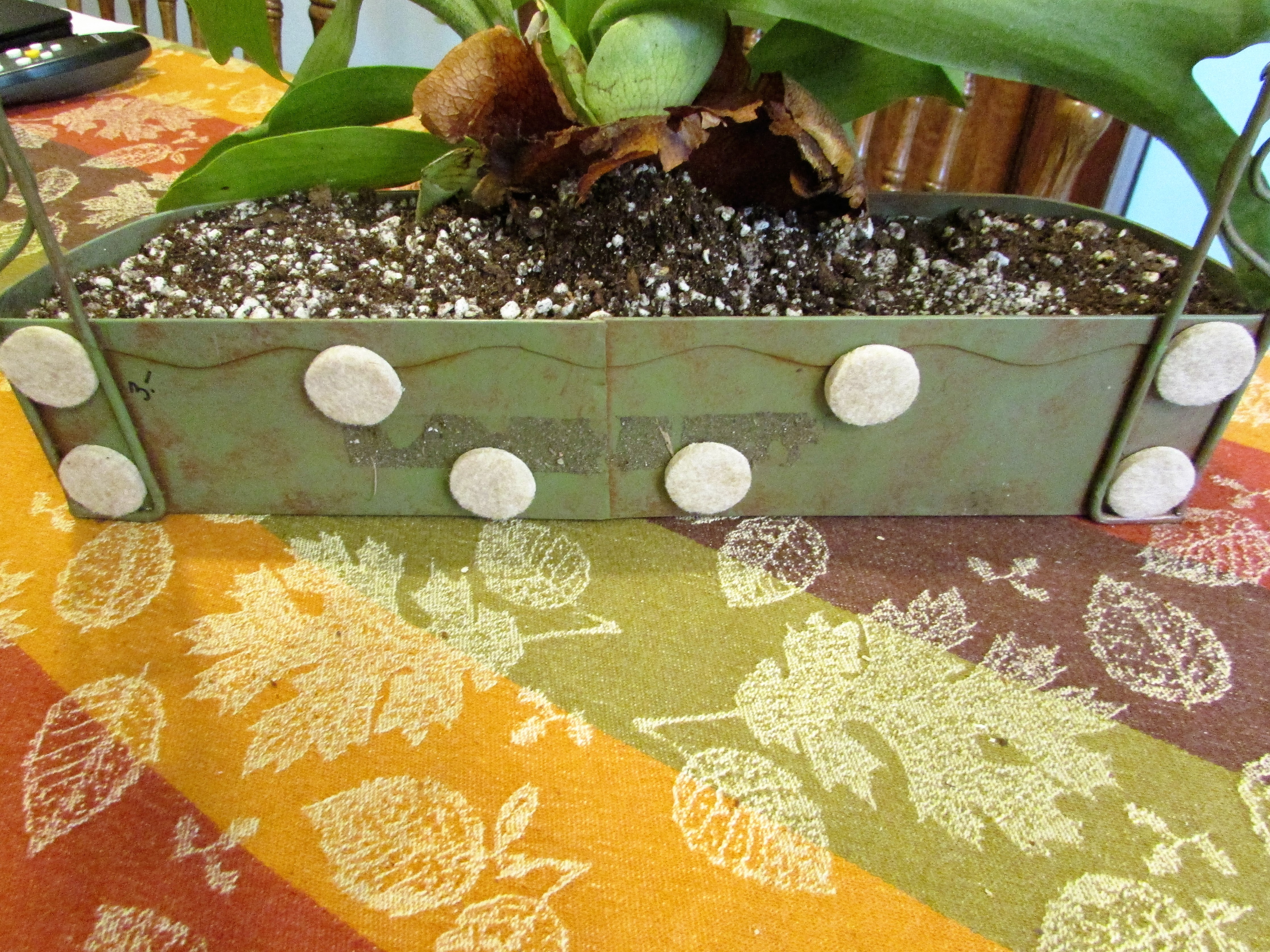 Chair leg pads were a good choice to keep the basket off of the wall. These are self-stick and only took a moment to apply.