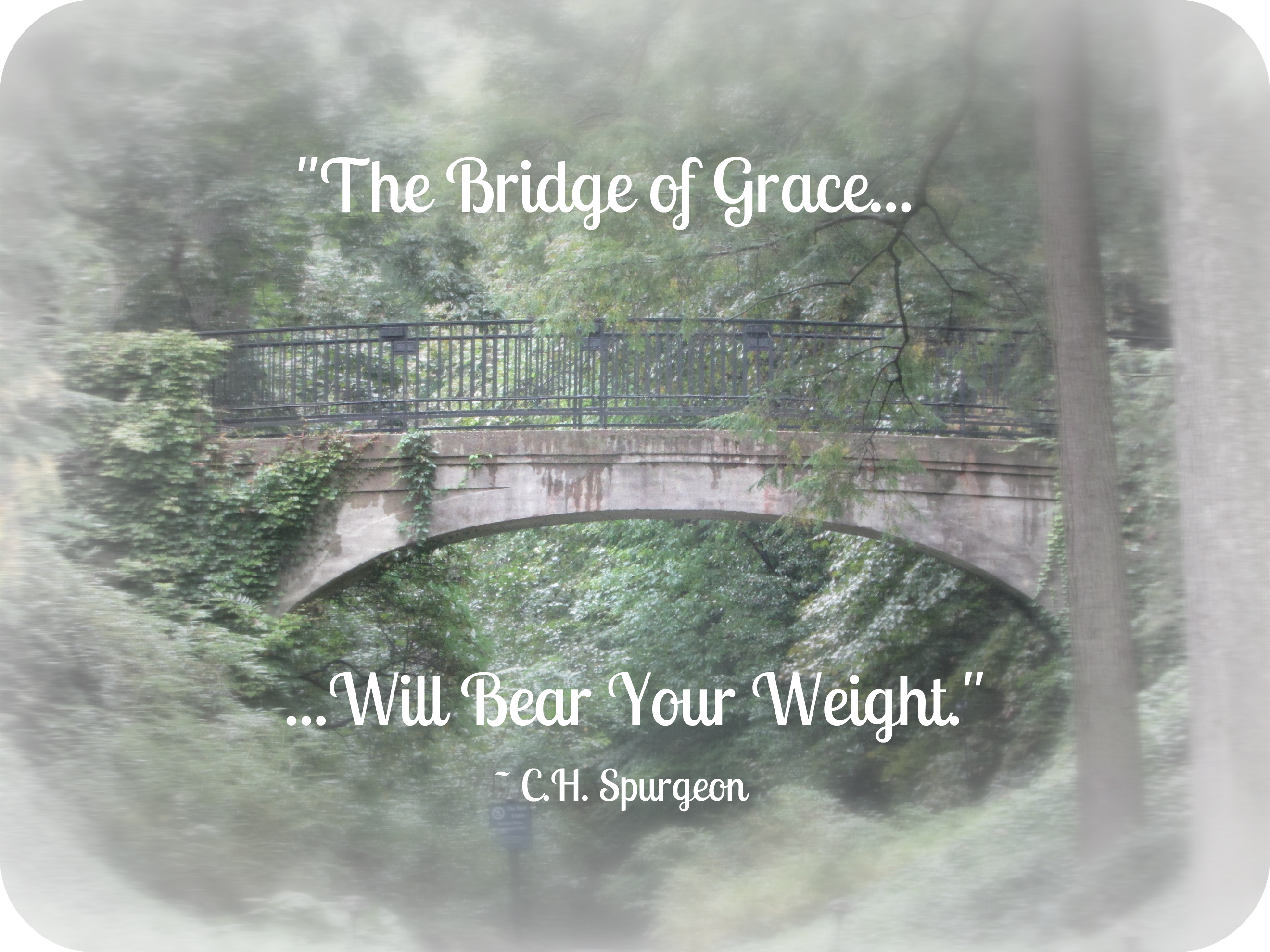 “The bridge of grace will bear your weight, brother. Thousands of big sinners have gone across that bridge, yea, tens of thousands have gone over it. Some have been the chief of sinners and some have come at the very last of their days but the arch has never yielded beneath their weight. I will go with them trusting to the same support. It will bear me over as it has for them.” ~ C.H. Spurgeon