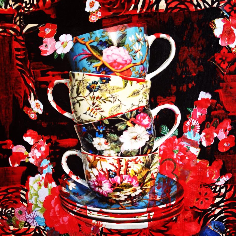 My sister teaches high school and middle school art. I love her most recent mixed media artwork. Her painting is the perfect choice to use as a blog post for starting off the Memorial Day Weekend. The colors, the energy within the painting…Beautiful!