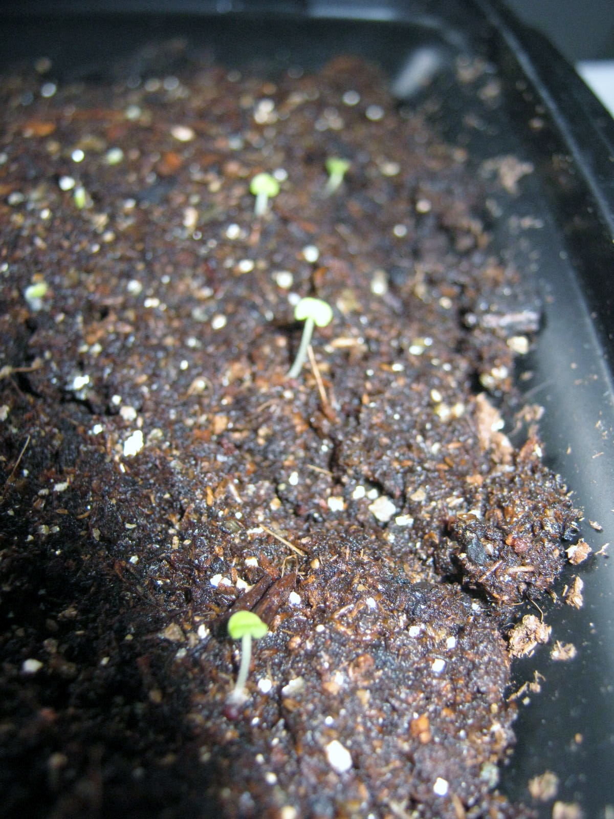 Some of the coleus seeds have sprouted too. They grow slowly. It will be weeks before there is a hint of color in the leaves.