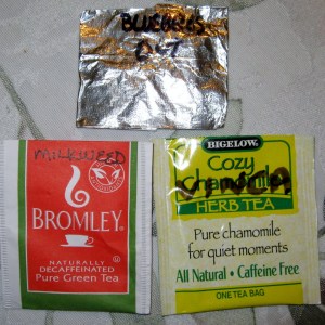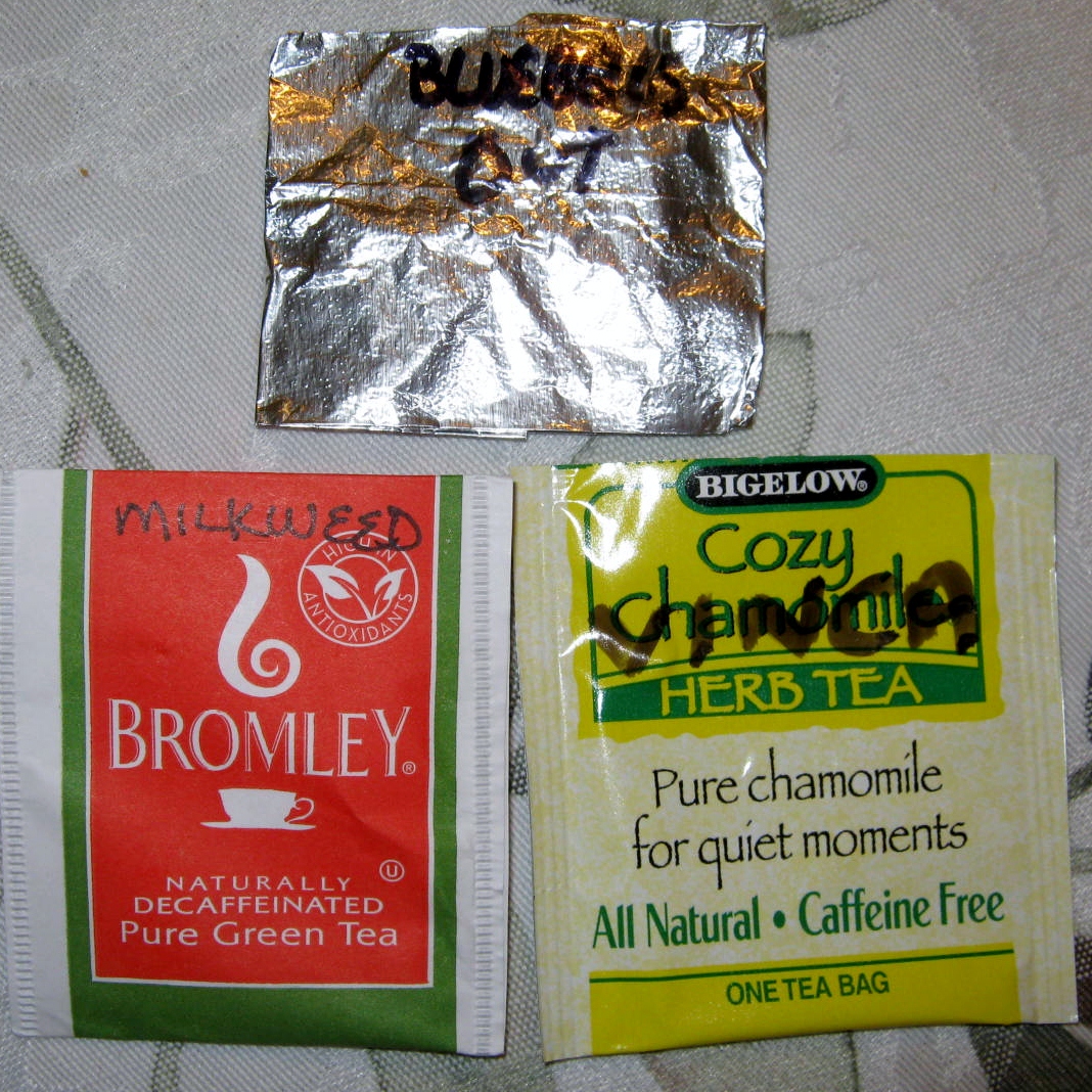 I then enclose the seeds in aluminum foil and store this packet inside a recycled tea bag wrapper.