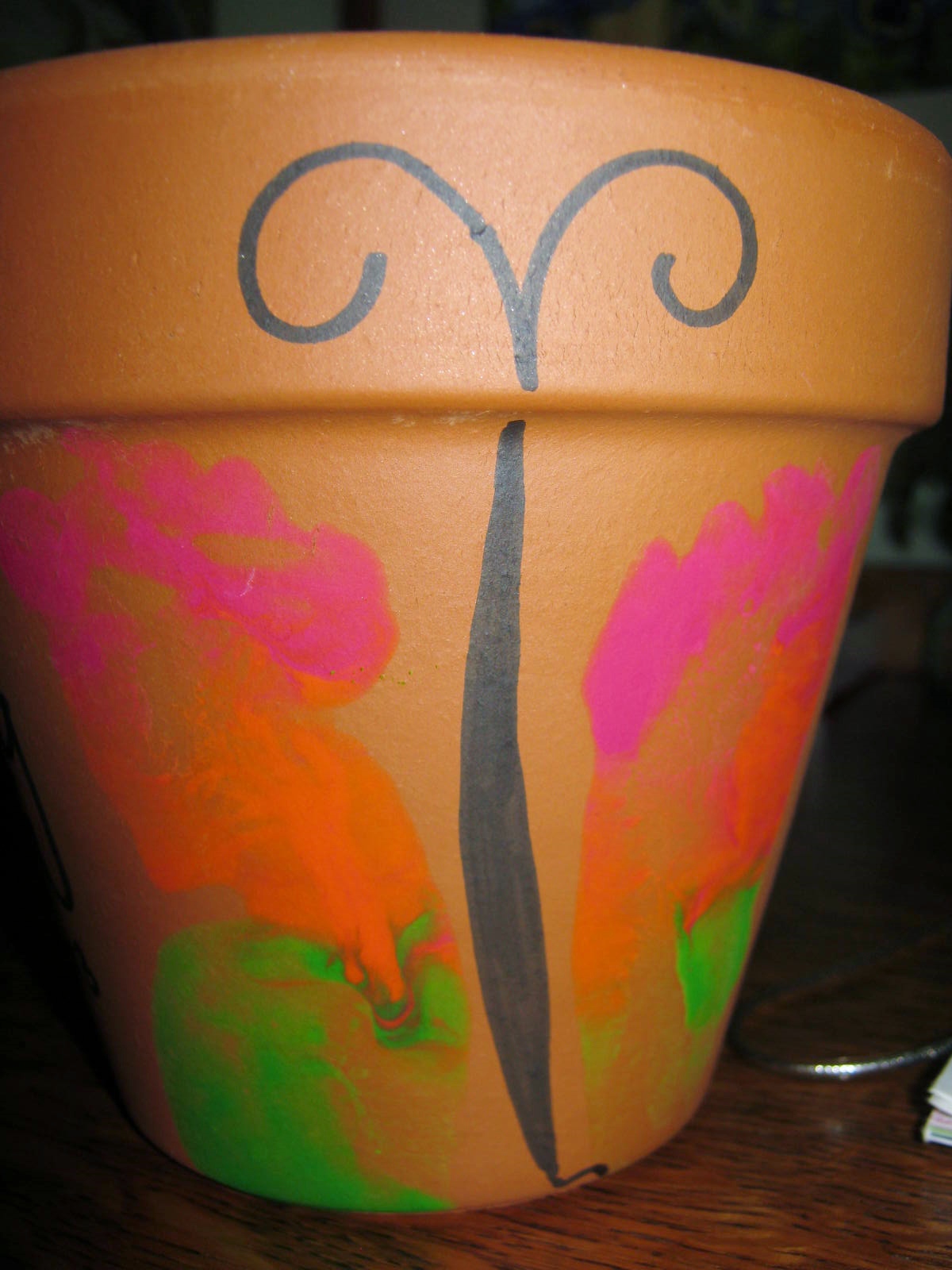 For today’s IAVOM, I used as a focal point a beautiful Iris that blossomed for Mother’s Day. I also included False Indigo stems from my garden, an excellent perennial for flower arranging. Can you spy the puffy chive blossoms near the Iris? The kangaroo paws, mini-carnations, tulip, and lily were broken stems from the Mother’s Day bouquets.