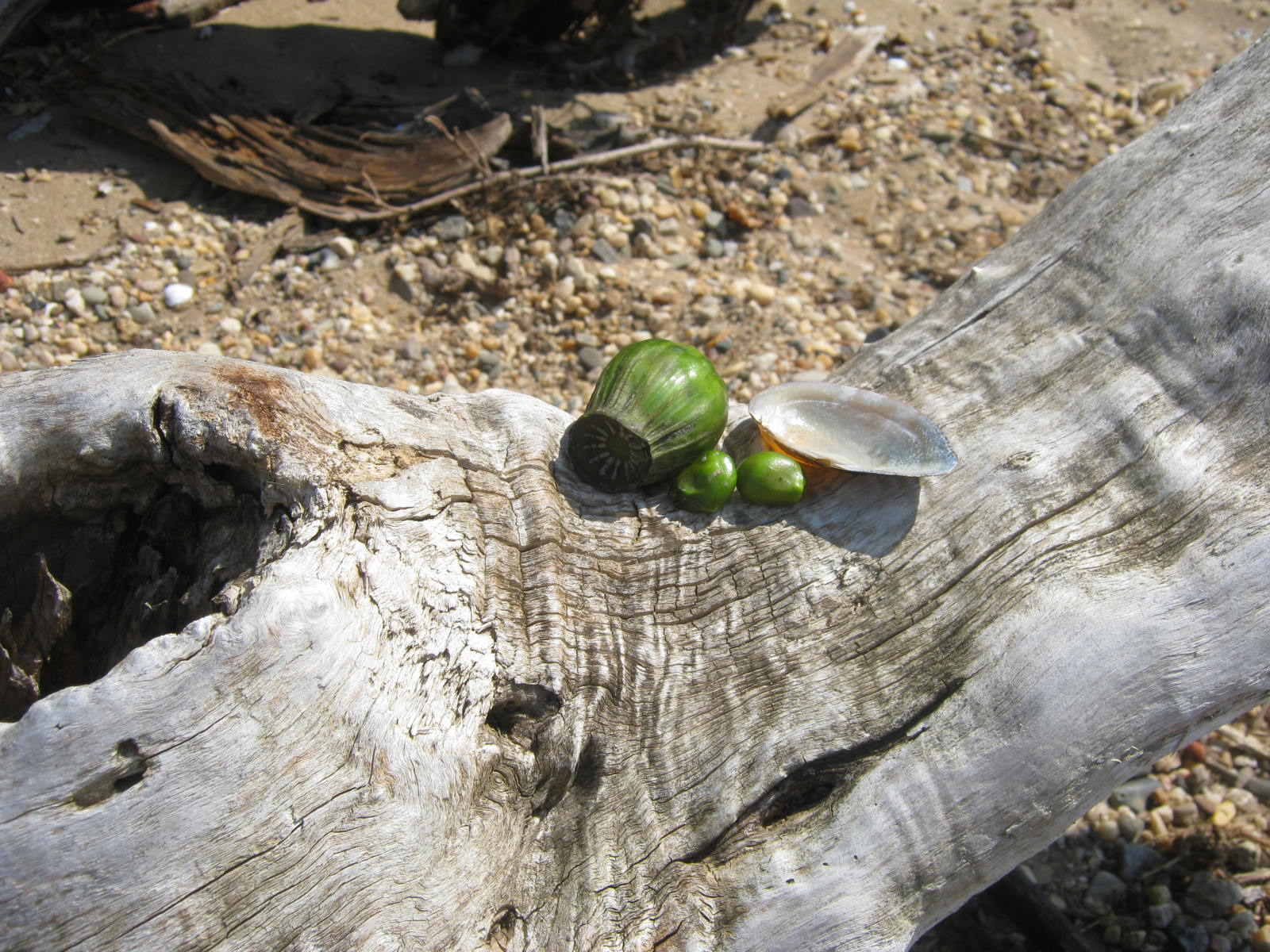 Scavenger that I am, I found some “river beans” or floating seeds along the shoreline. Of course I pocketed them and brought them home to try and grow.