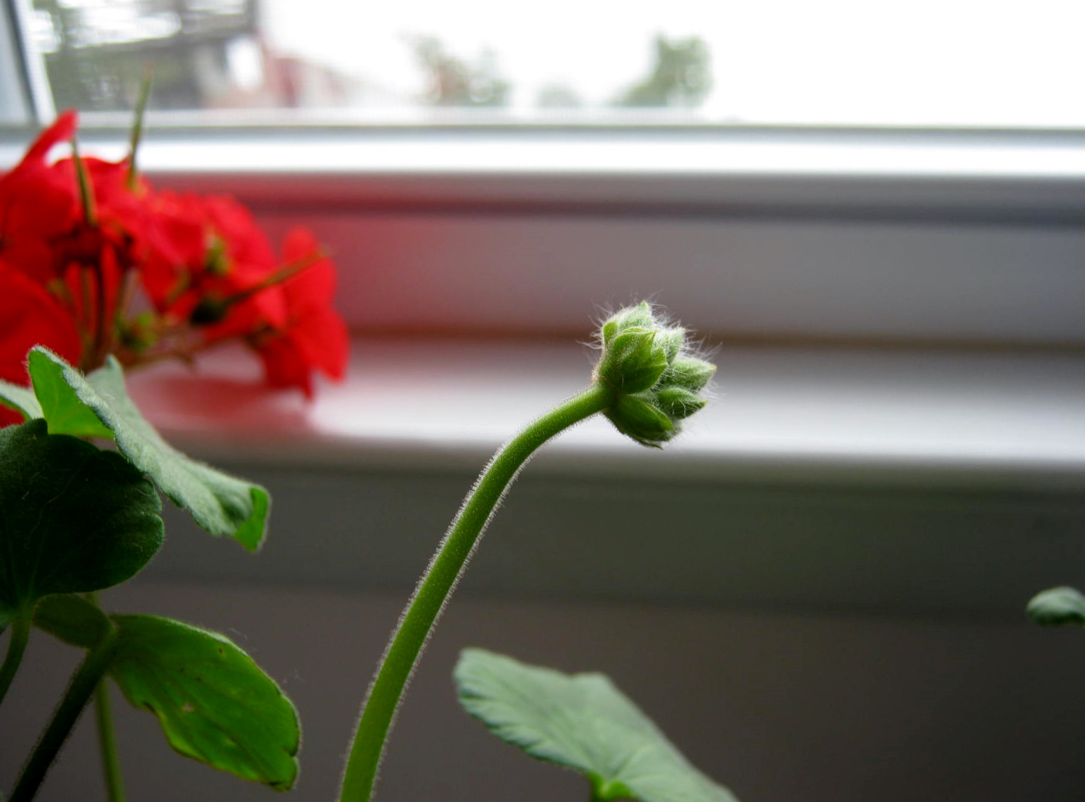 The geranium isn’t about to stop giving me moments of bliss with its bright flowers. This is a photograph of a new bud I took yesterday. The success of the plant has made up my mind where the coming summer is concerned. I will grow all the geraniums in pots, and in the Autumn bring them inside to cheer up the house all winter long. Happy Gardening!