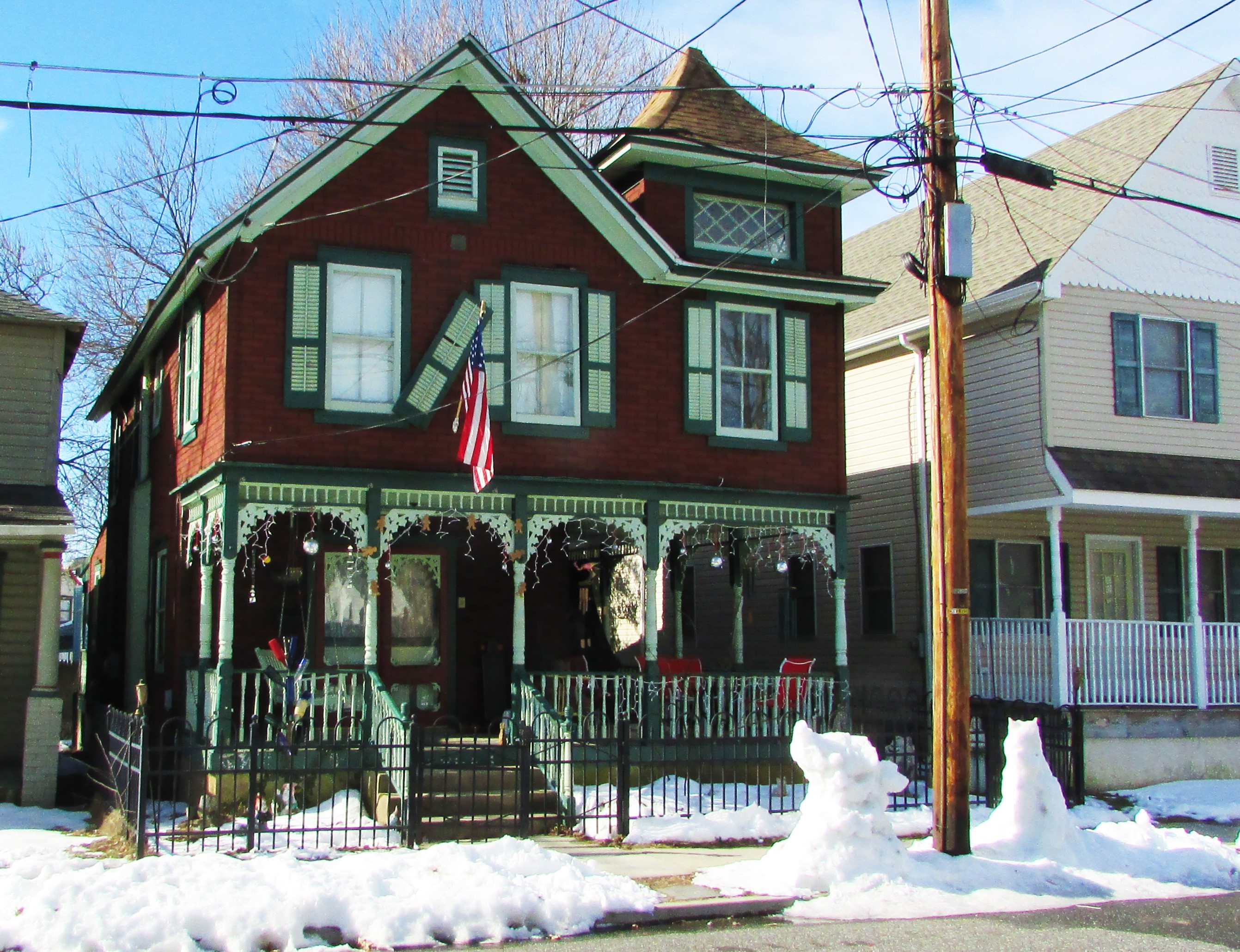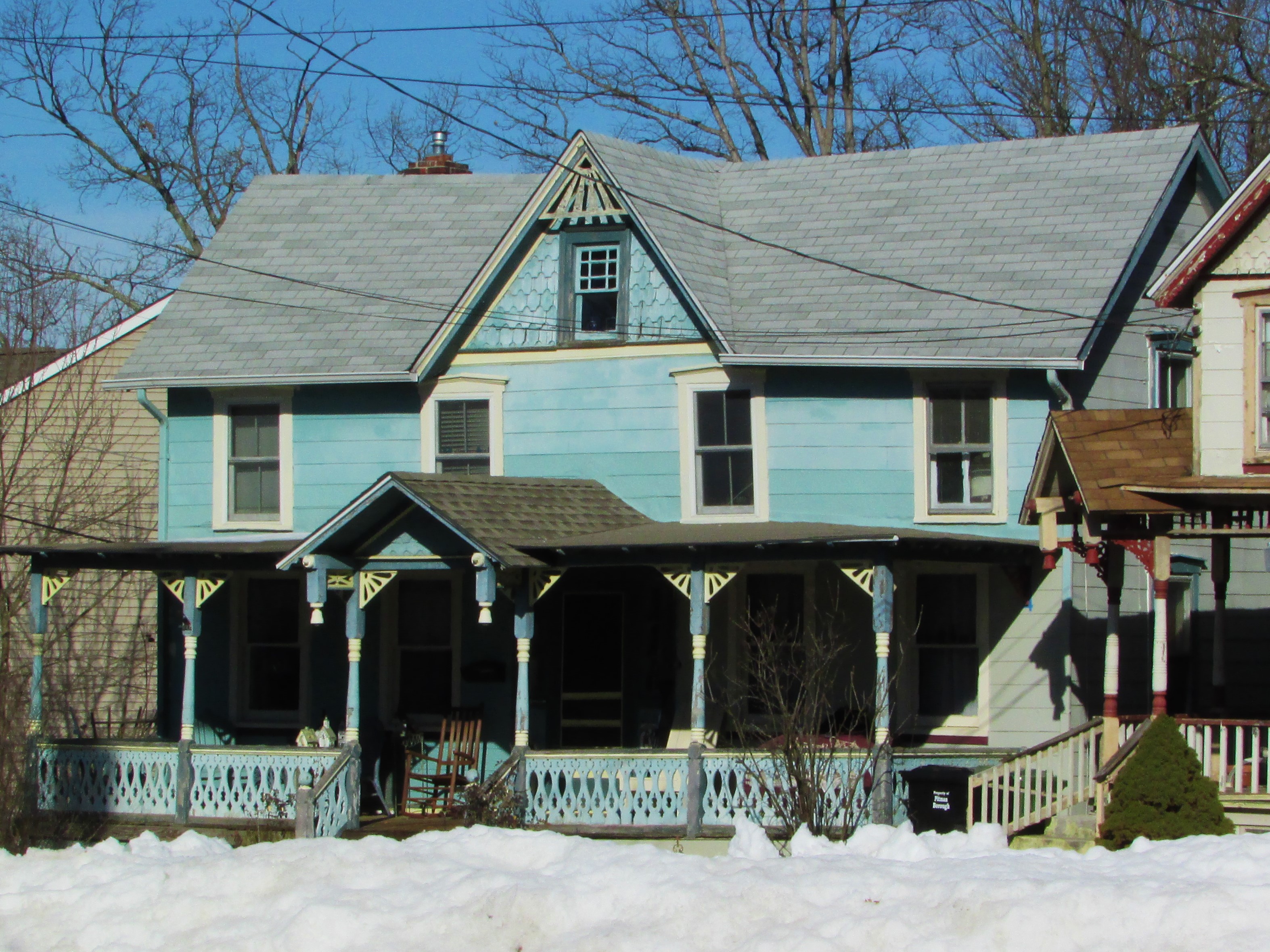 These RAINBOW cottages stand in the Pitman Methodist Campground, now commonly called ‘The Grove,’ in Pitman, New Jersey. I couldn’t find a solid purple house, but did find some pretty lavender gingerbread to stand in its stead.