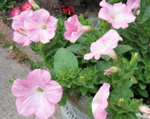 I can’t remember the source for this beautiful petunia, but oh my, am I glad I found it. I planted it up in Spring with some Sweet Potato Vine and have been in love with it ever since. It really lives up to the Proven Winners Brand description of fillers and spillers, for it certainly fills the basket and spills over the side. Beyond that, the color of the plant is extraordinary, truly a silvery pink. The flowers are small and compact, and even though I try to deadhead them, they don’t seem to need it to continue to bloom in abundance. I highly recommend this lovely flower. It is worth every penny you pay for it.