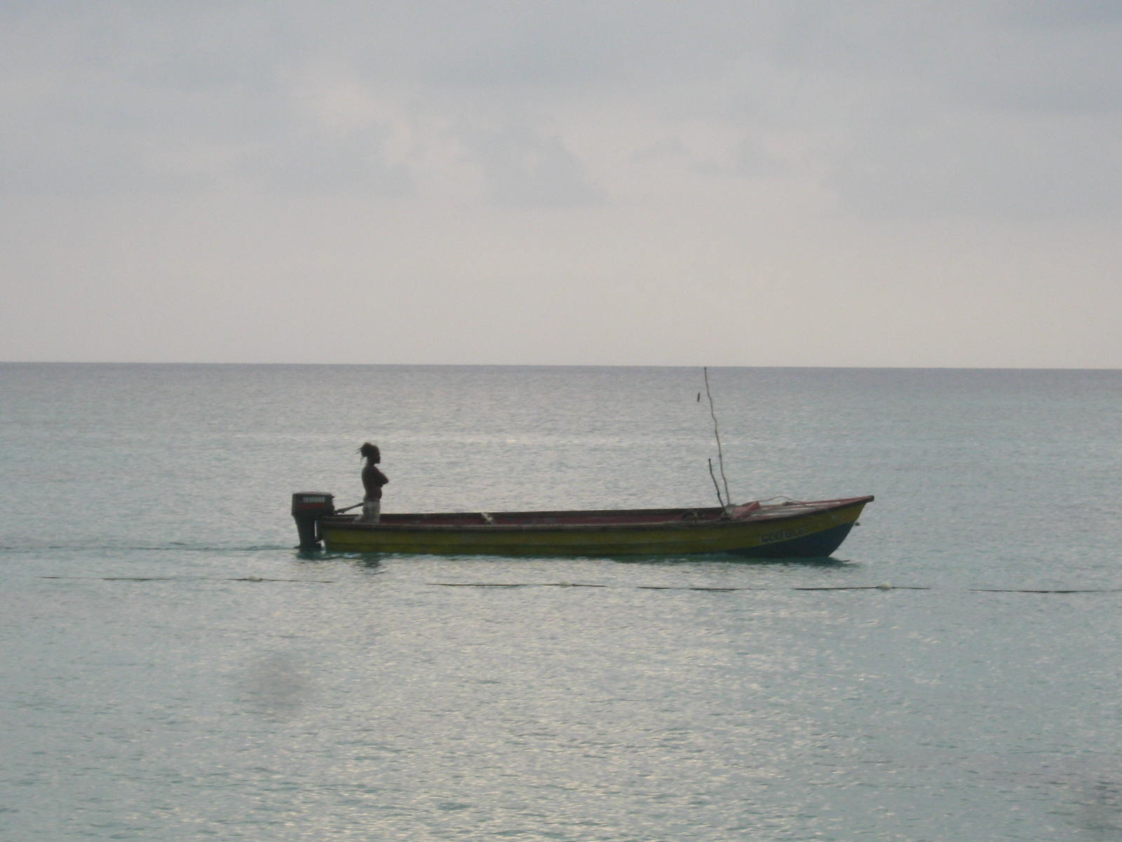 Sunrise in Montego Bay, Jamaica. A fisherman soundlessly glides past the sleeping Royal Decameron Resort.