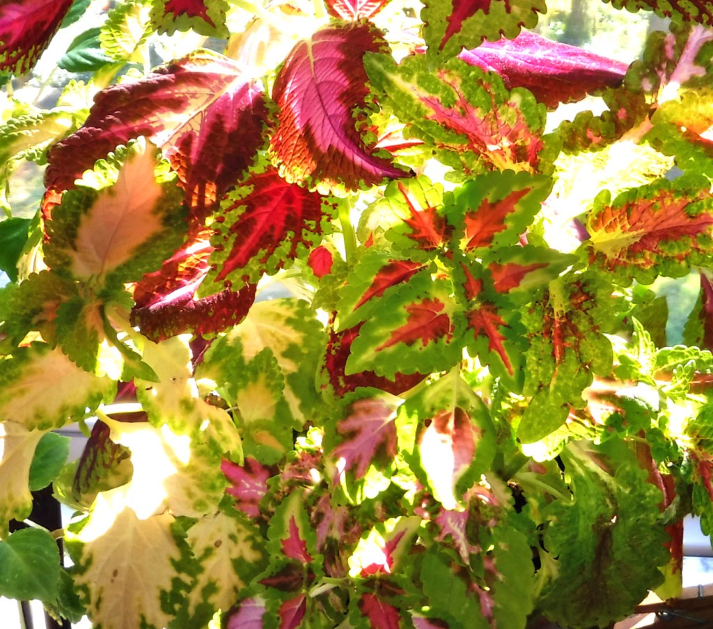 GOD’S DIAMONDS – An overnight rain left our pine trees covered in a million sparkles in the morning sunlight. I feel blessed when I am able to see such a beautiful work of art at the beginning of the day. LIGHT REFLECTED ON RIPPLING STREAM – Slanting Autumn sunlight mirrors the colors of stained glass onto the brook. END OF THE ROAD GOLD – A final glory, the best is at the last…golden leaves beside the creek. STAINED GLASS COLEUS – Did the first stained glass craftsmen use nature as inspiration? (This beautiful pot of coleus are growing in my home. They self-seeded in the front garden in an odd and unusual manner. More on this in a later post.)MORNING-BORN GRATITUDE – I don’t need rose-colored glasses to feel blessed when a day starts in living color. GOD’S DIAMONDS PART II – I am bookending my Six on Saturday with more morning sunshine diamonds in the pines.