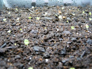 One of the topics I found to be of great help was on the subject of what the worms like to eat. I saw that cantaloupe and other melons are a worm favorite. I had an old piece of cantaloupe rind in my fridge that was beyond the date of safe human consumption so I decided to give it a try. I scooped out the interior of the melon and placed it in a corner of the worm farm. What a surprise awaited me in about ten days or so…the cantaloupe seeds had sprouted. You can see a few of them in the picture above. After reading a blog post on Vermicomposters.com, I was assured that this is common and is an indication that you are doing things right. You can read the vermicomposting post here: Sprouting Seeds