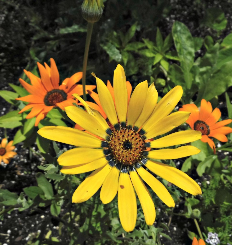 They’ve been planted in terracotta pots for months, growing in the basement’s sunniest window. They looked good for a while, and then became gangly and overgrown. I almost threw them out, but convinced myself they might bloom outdoors. I put them in an out of sight area behind the bird bath. I’m glad I kept them. They have begun to bloom. Although I only detect a slight fragrance, the beauty of the bloom is pleasing. There are more buds to open, I wonder what colors I will gather for vases next.