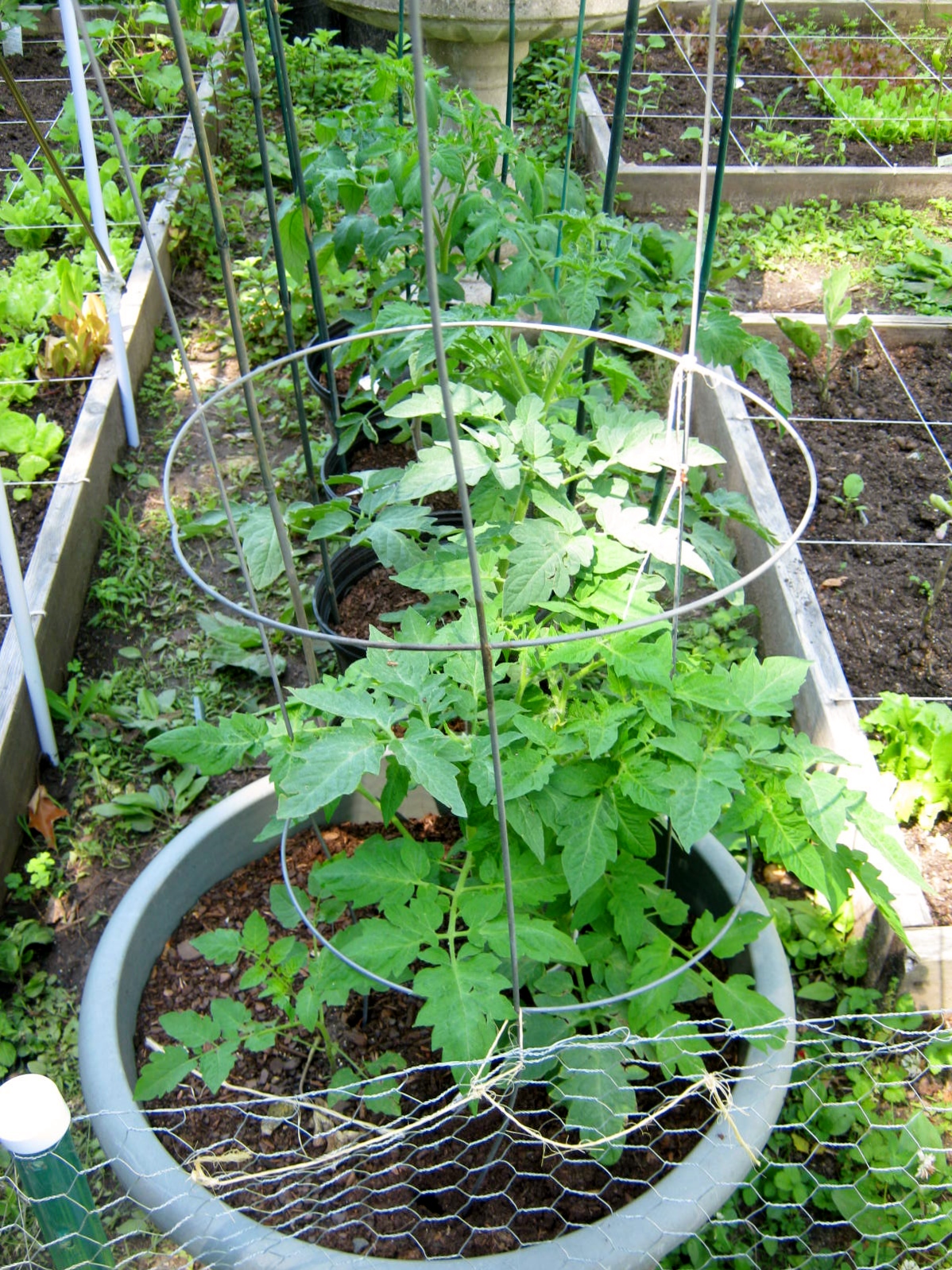 I have over a dozen tomatoes planted in my Square Foot Garden. I started them from seed in the house this year. The tomatoes are doing okay, but not producing growth to rave about.