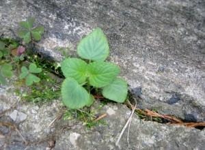 The warm temperatures of June have been a blessing, and volunteer seedlings are sprouting. Many are a perfect solution for the empty spaces in my flower beds. Unfortunately, the best sprouts seem to grow between the bricks and walkways, nurtured by the heat generated in the cement. I have found a way to get these small plantlets out and grow them on into full-sized plants. Pulling them, even very gently, never works; the roots will break away. Instead I slip a putty knife (or any type of slim metal) into the soil alongside the plant, keeping the blade pressed firmly against the cement. I do this on each side then carefully pull the plant out of its nesting spot. In most cases this technique works and the sprout can be removed with root and dirt intact.