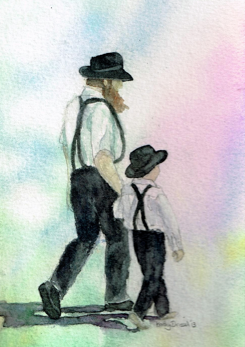 At 24 x 24 inches, the painting is larger than I usually attempt in my watercolor painting. It is painted on Arches 300 lb Cold Press paper with Winsor & Newton watercolors. My palette had a mother color, this is a shade that I mix in varying degrees into all the other colors. The mother color in this palette was Burnt Umber. Additional colors were Winsor Blue Red Shade, Winsor Blue Green Shade, Quinacridone Magenta, Winsor Yellow, Olive Green, Ultramarine Blue and Burnt Sienna. I also used my Derwent Inktense Pencils to create the flecks of color in the sand. The tip can be found here: Creating Texture with Colored Pencils. I hope you like “Sophie’s Auntie.” I relived the beautiful sunny day while I painted her and felt like I was on vacation again.
